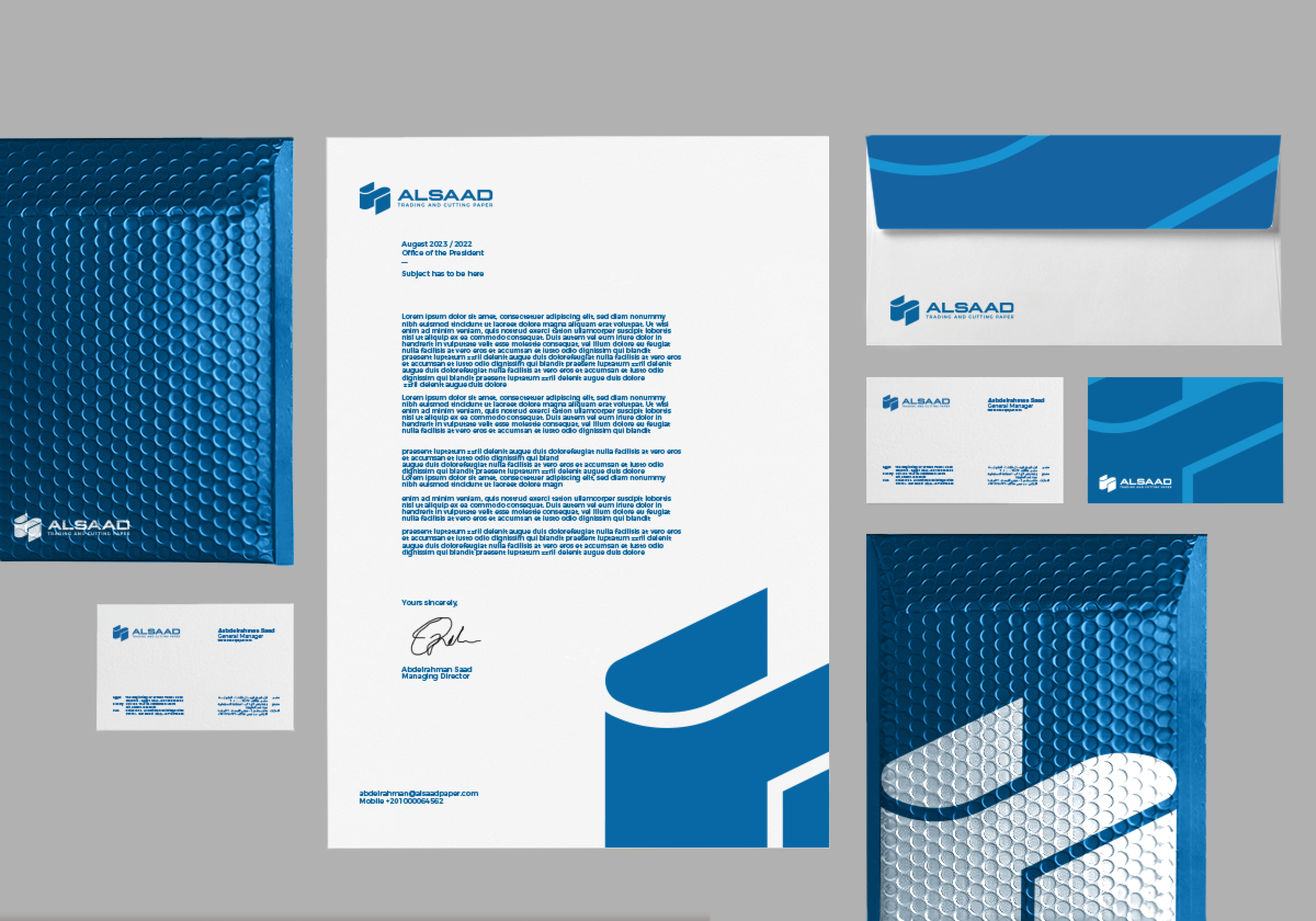 We extended ALSAAD’s new visual identity into modern, streamlined packaging designs. The visuals build on the logo’s stacked paper roll concept, reflecting structure, clarity, and movement. The final packaging captures the brand’s focus on order and efficiency in the paper trading industry, with a minimal and professional look.
